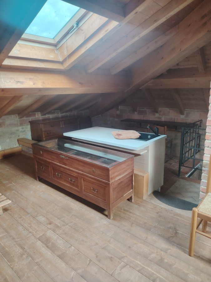 Vinci, a pochi km dal centro paese e 6 km da Lamporecchio, appartamento con l'ingresso singolo posto al piano primo con ampia soffitta abitabile. Ingresso posto al piano terra salendo le scale in pietra, entriamo nel soggiorno con angolo cottura (la cucina è stata messa nuova), balcone abitabile panoramico, camera matrimoniale, studio, disimpegno arredato con libreria; la soffitta direttamente collegata al piano primo è un unico ed ampio vano, perfetto per ulteriore salotto o studio. Arredato e ben tenuto. 2 posti auto esclusivi. 2 mensilità a deposito cauzionale. Per informazioni, Chiara 3939115011.