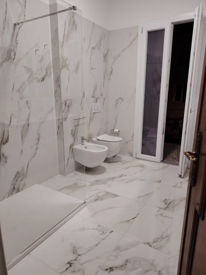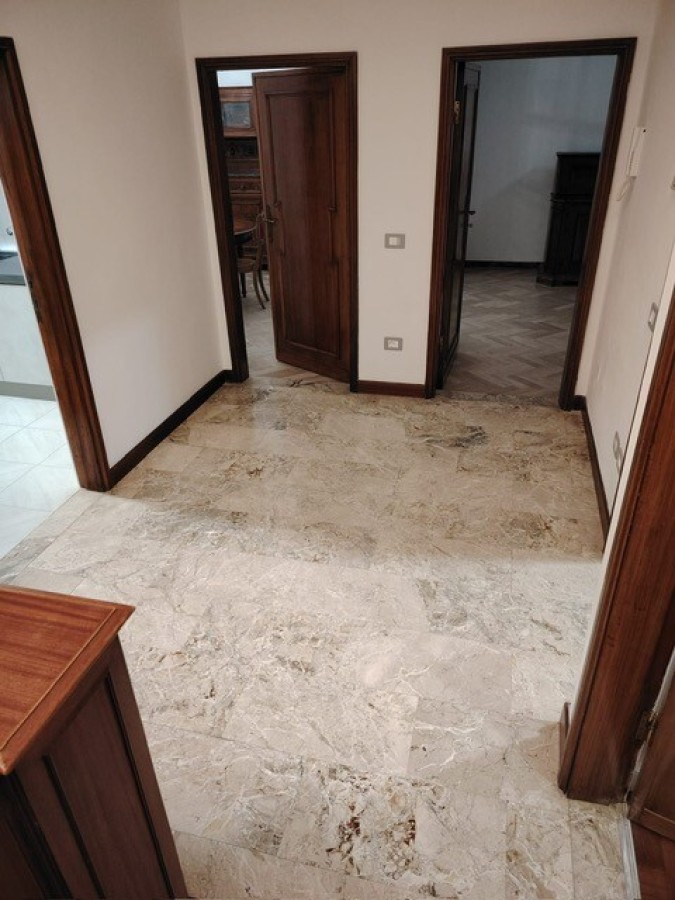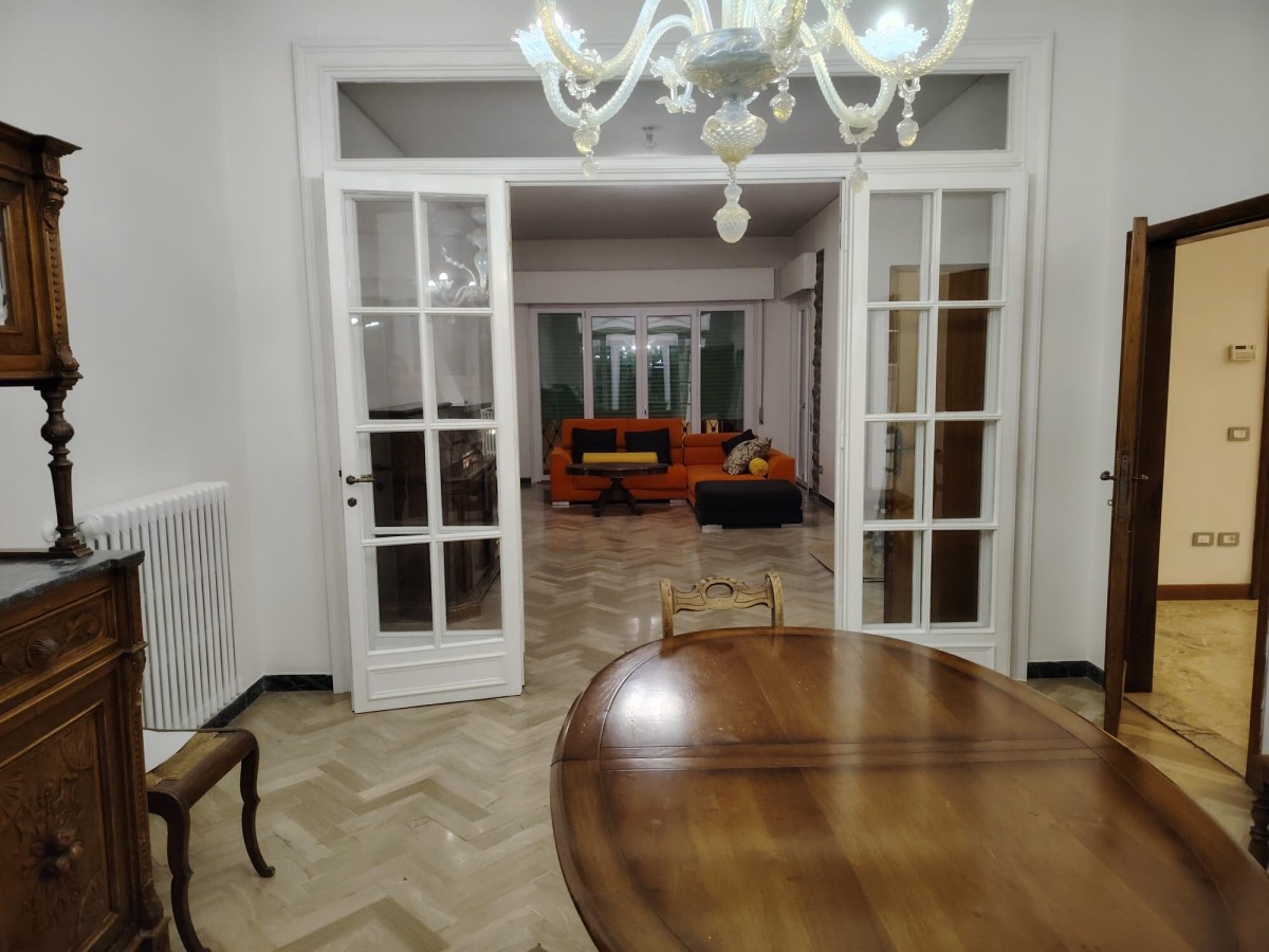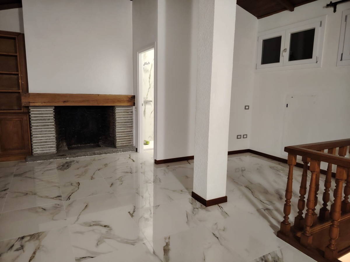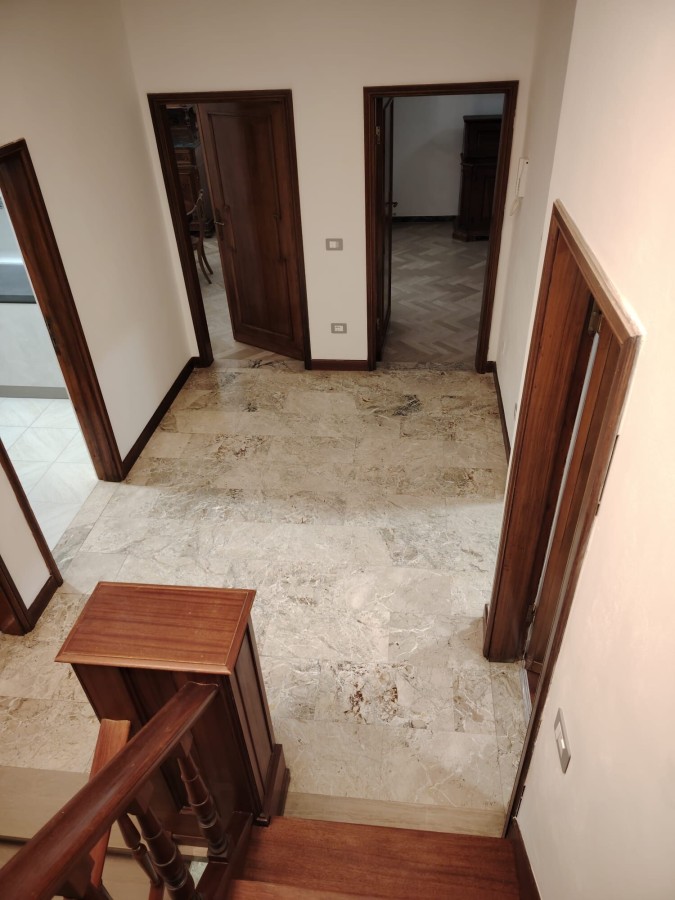 L'ingresso privato è posto al piano terra: ampio disimpegno, studio con porta finestra sul giardino esclusivo (23 mq) e reparto lavanderia; da scala interna in marmo arrivando al piano primo troviamo il salone, la sala da pranzo, la cucina (ad induzione), due camere matrimoniali ed il bagno. A piano 2 terrazze. Infine sovrastante mansarda di 35 mq con bagno e terrazzo. Il tutto arredato ed imbiancato.
