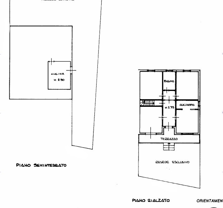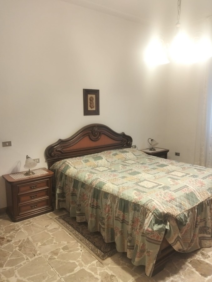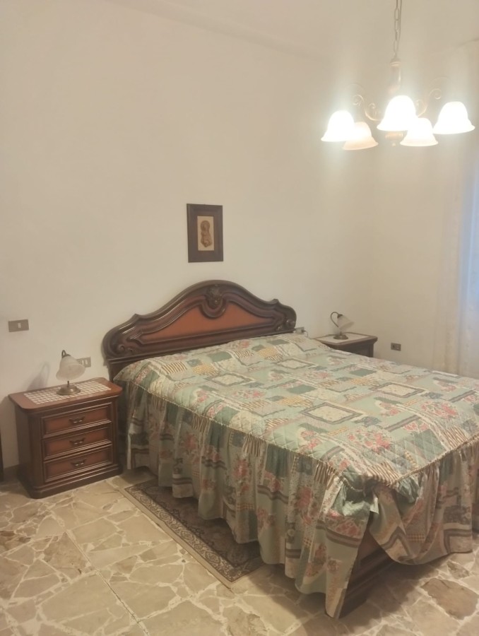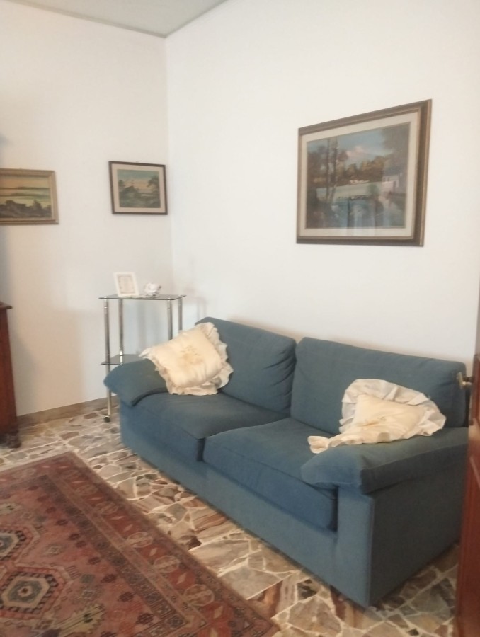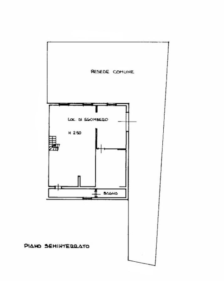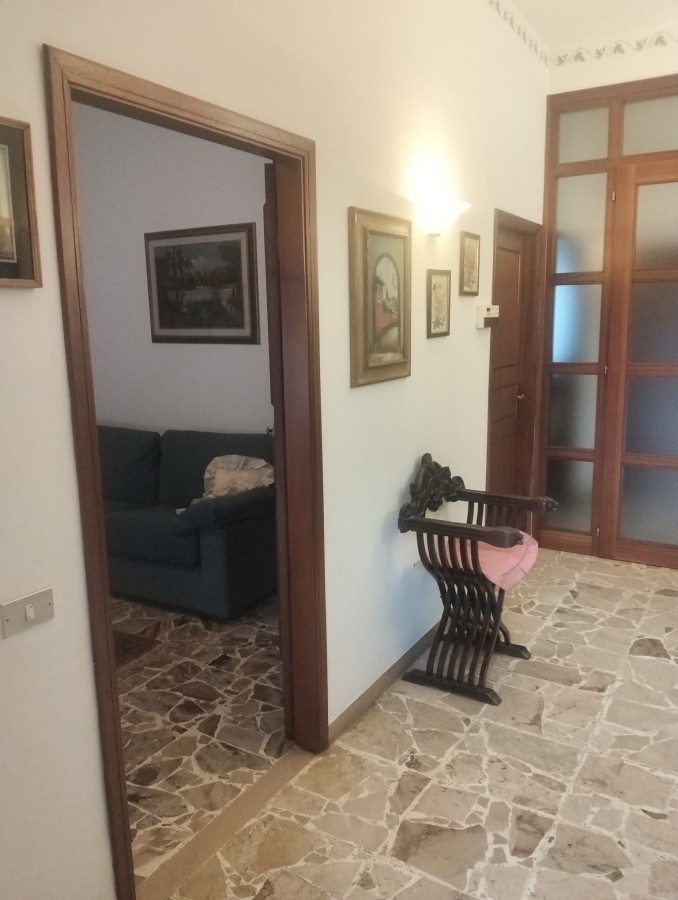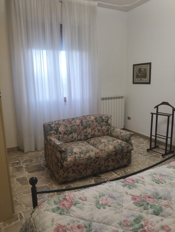 L'ingresso principale è posto al piano terra, percorrendo il giardino frontale e salendo i due scalini ci troviamo nel disimpegno, su un lato il soggiorno, dall'altro il cucinotto aperto sul tinello; disimpegno notte, due camere matrimoniali, il bagno e ripostiglio. I vani sono ampi e luminosi le metrature ed altezze sono quelle degli anni '70; scendendo la scala interna si accede direttamente nel piano seminterrato: ampio vano locale di sgombero con caldaia ed attacchi lavatrice, una seconda cucina ed il garage. Frontale all'ingresso del piano terra il giardino, laterale alla proprietà la rampa esclusiva che fa accedere sia in tutto il piano seminterrato che al terreno agricolo con olivi.