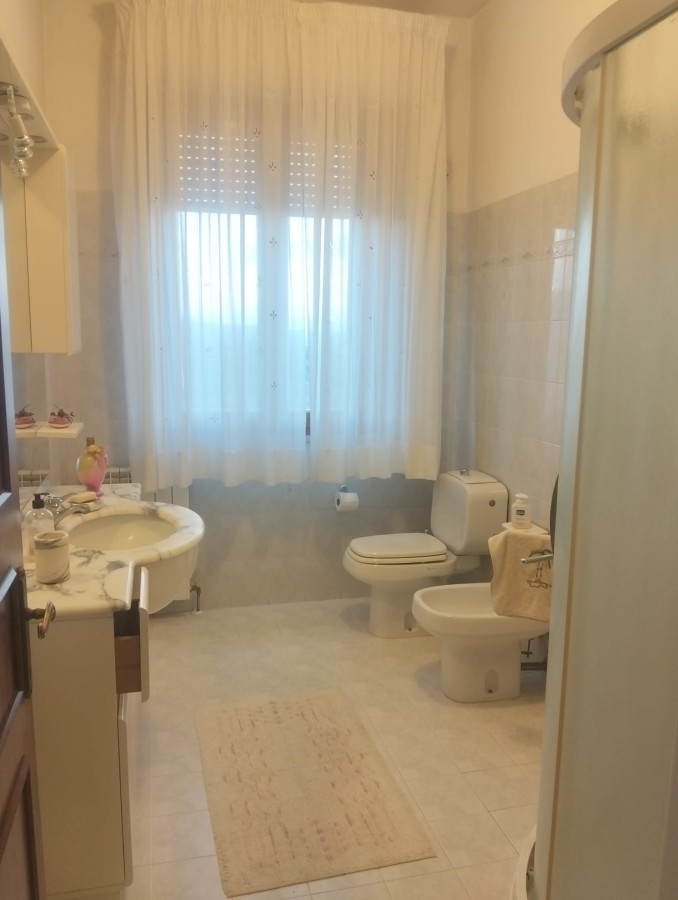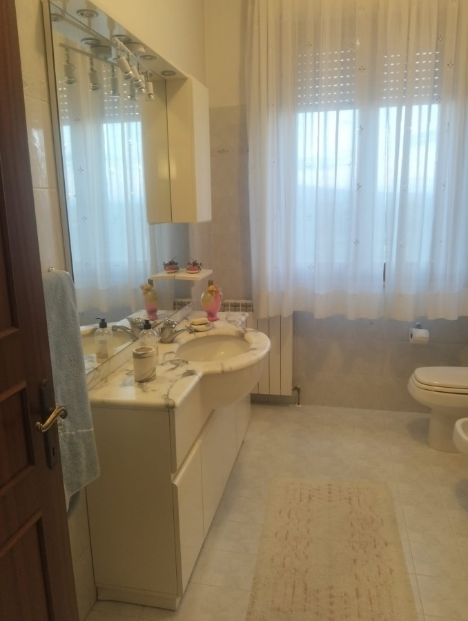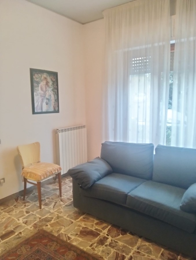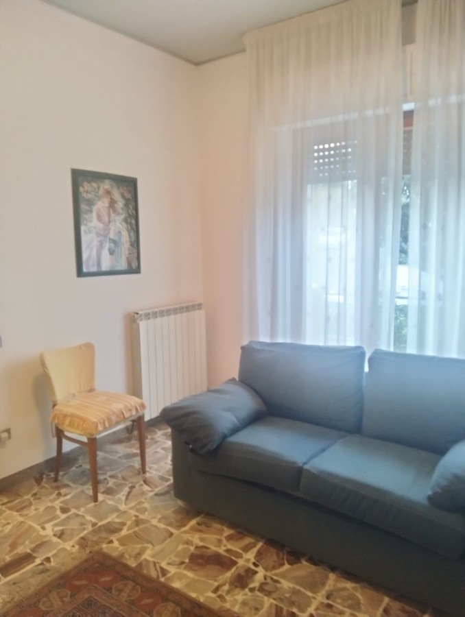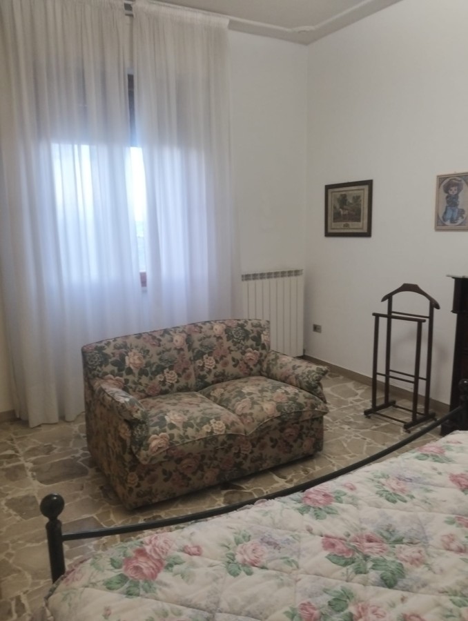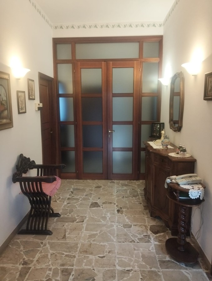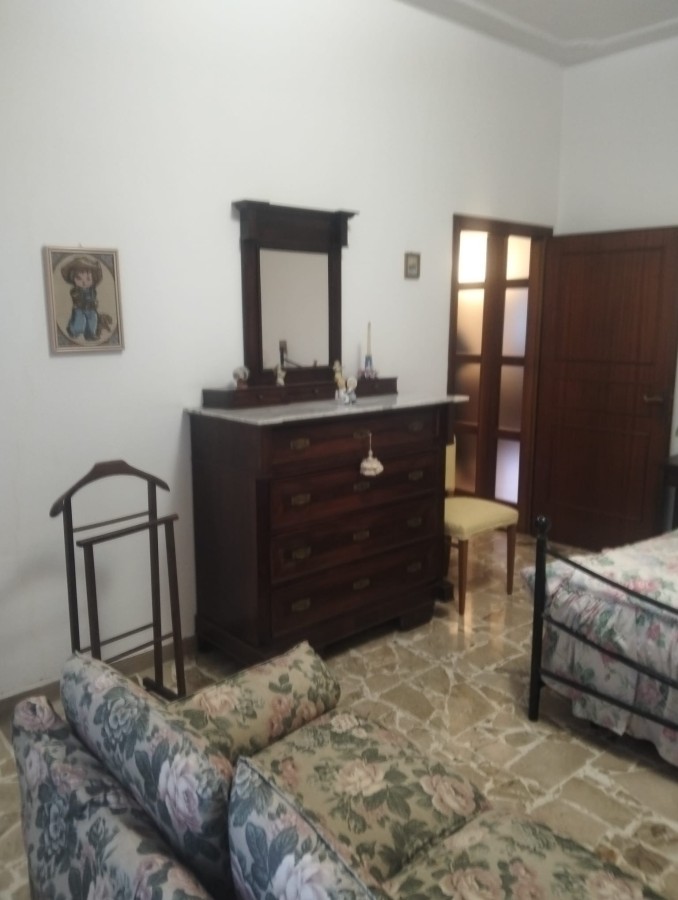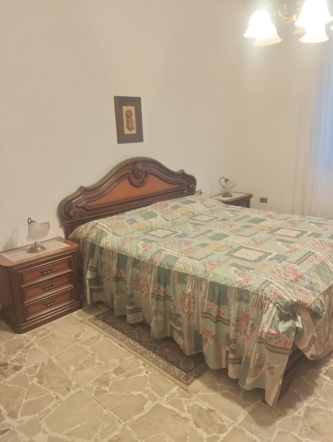 L'ingresso principale è posto al piano terra, percorrendo il giardino frontale e salendo i due scalini ci troviamo nel disimpegno, su un lato il soggiorno, dall'altro il cucinotto aperto sul tinello; disimpegno notte, due camere matrimoniali, il bagno e ripostiglio. I vani sono ampi e luminosi le metrature ed altezze sono quelle degli anni '70; scendendo la scala interna si accede direttamente nel piano seminterrato: ampio vano locale di sgombero con caldaia ed attacchi lavatrice, una seconda cucina ed il garage. Frontale all'ingresso del piano terra il giardino, laterale alla proprietà la rampa esclusiva che fa accedere sia in tutto il piano seminterrato che al terreno agricolo con olivi.