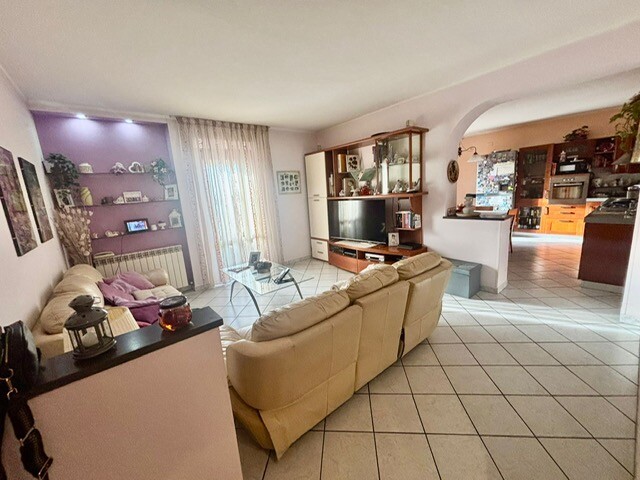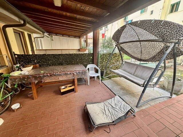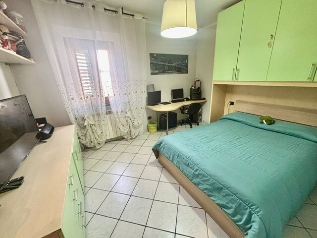 Bel quattro vani con stanze quadrate e adatte a qualsiasi tipo di arredo, il tutto composto da soggiorno con balcone, cucina, due camere matrimoniali e bagno. A corredo della proprietà, al piano terra ampio resede esclusivo di 60 mq con 2 ripostigli.