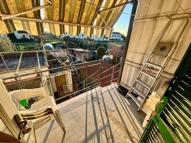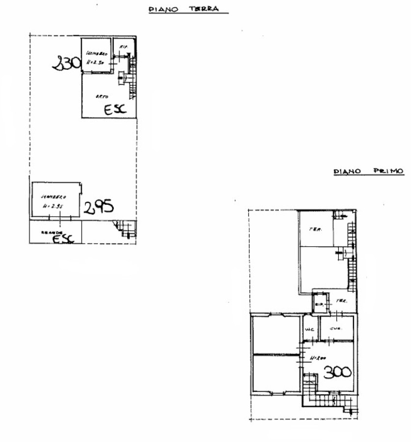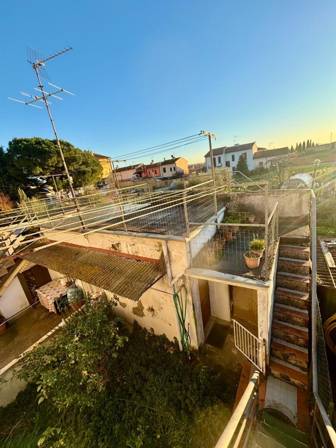 Da scale esterne in muratura troviamo l'ingresso al piano primo: soggiorno tinello aperti sul cucinotto, due ampie camere matrimoniali, ripostiglio e bagno. Il cucinotto ha porta finestra sul terrazzo, in cui troviamo le scale esterne che fanno accedere nell'orto esclusivo e i due accessori, l'uno adibito a reparto lavanderia e stesura biancheria, l'altro cantina carrabile per moto bici e minicar. In mq: l'abitazione sono circa 76 mq, gli accessori 26 mq e l'orto circa 27.