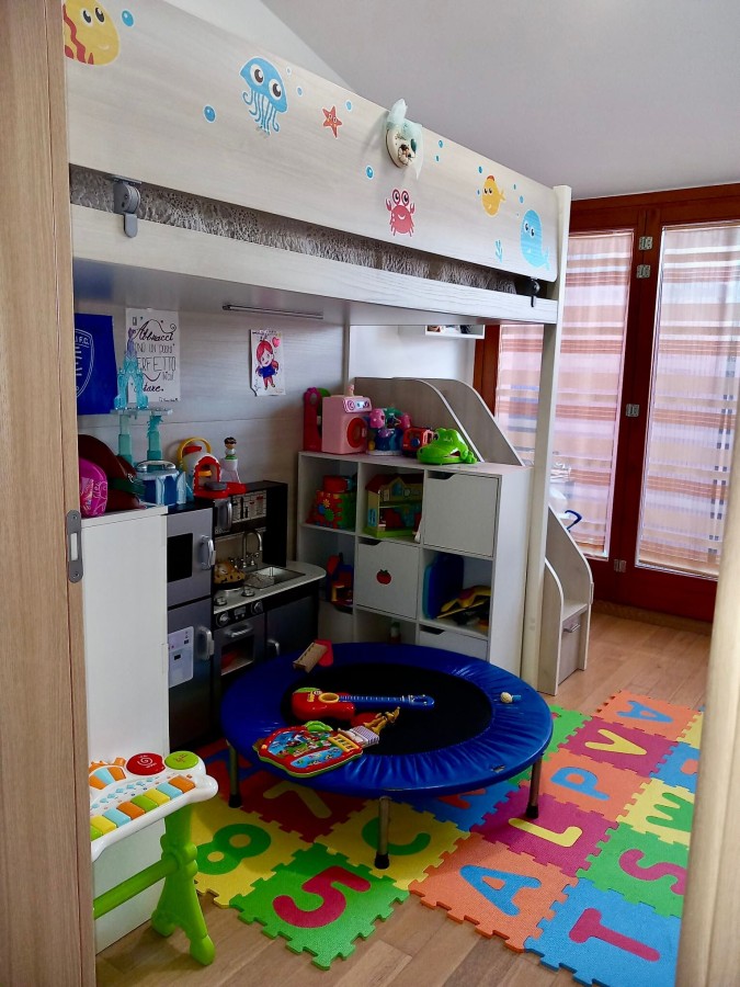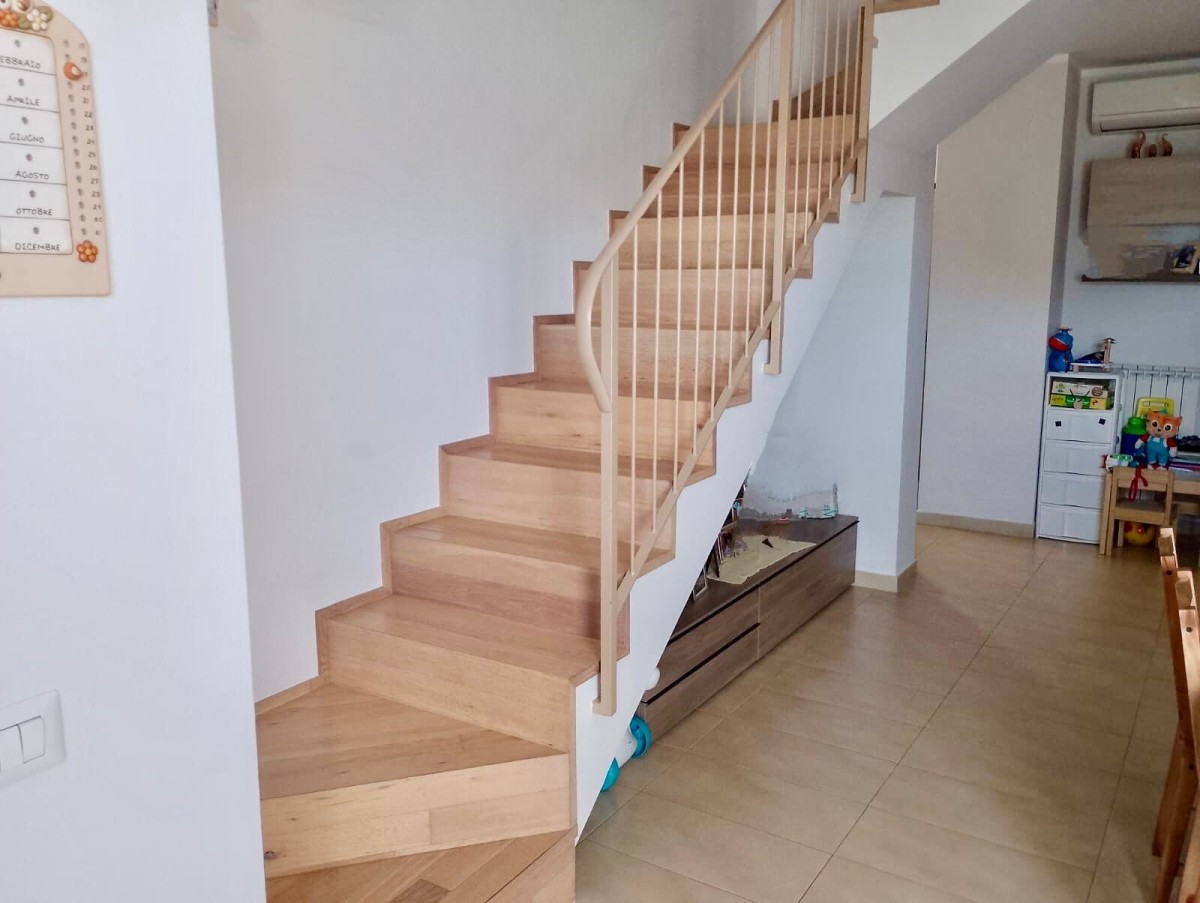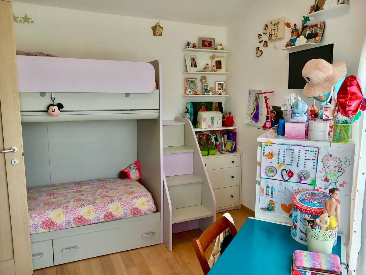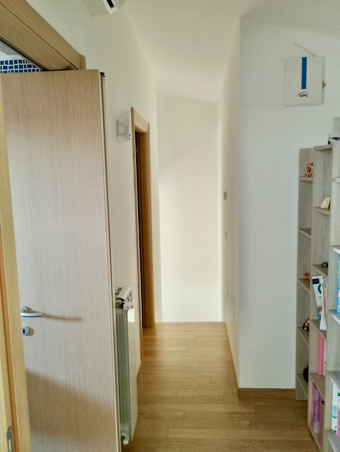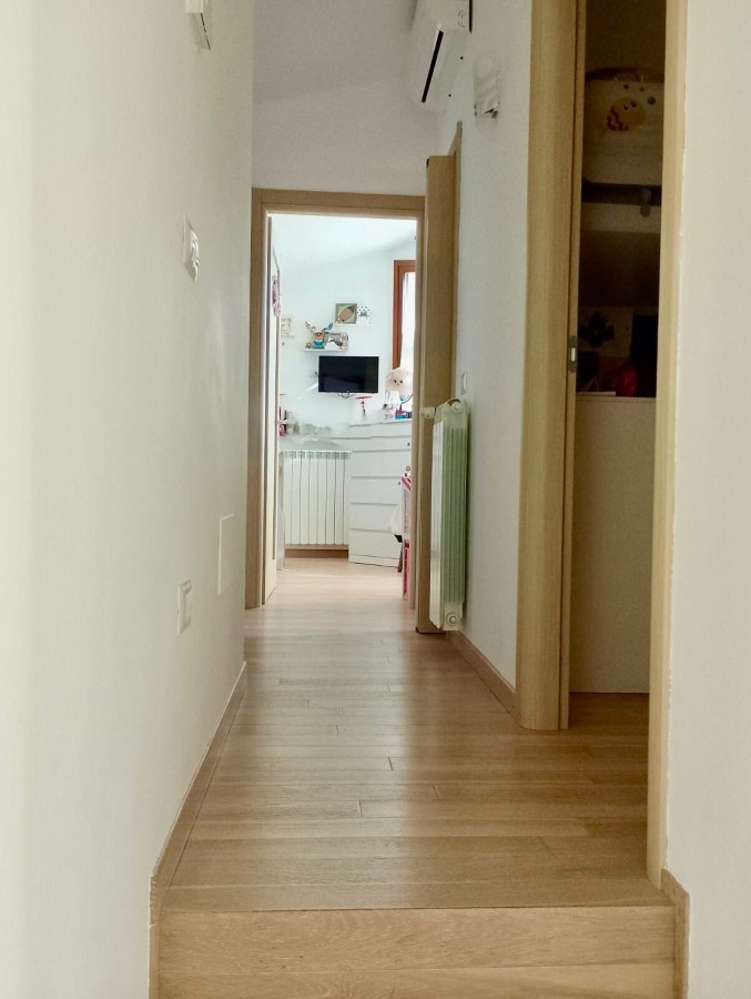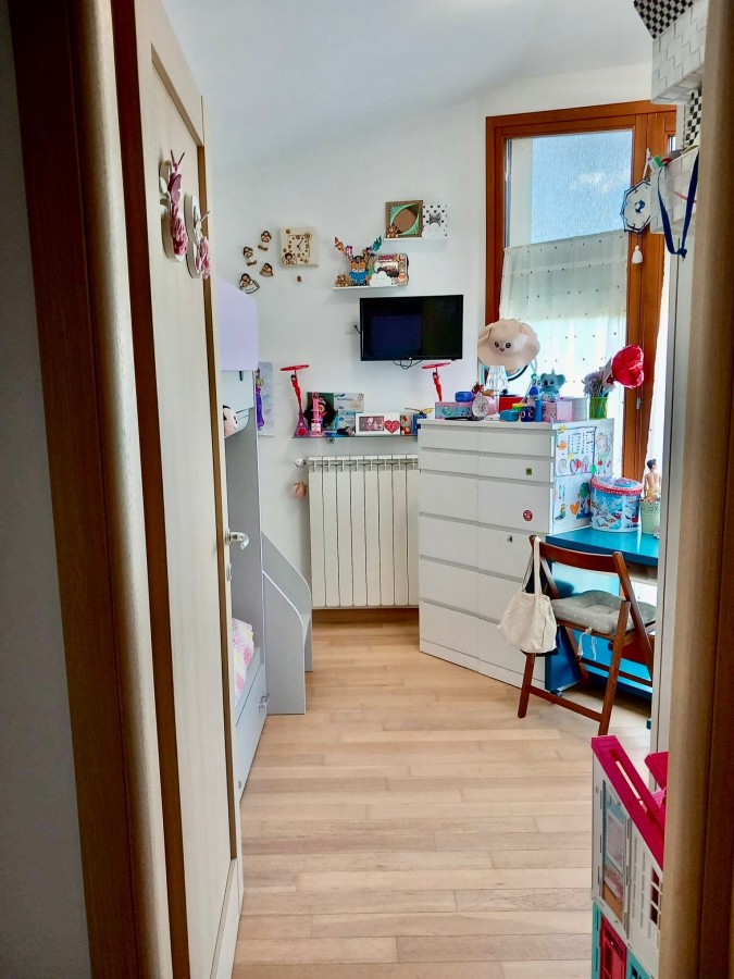 In piccolo condominio, posto al piano primo oltre ampia soffitta sovrastante abitabile, appartamento composto da una bella zona giorno cucina aperta sulla sala, camera matrimoniale e primo bagno; da scala interna in muratura rivestita in legno chiaro sia accede al piano soffitta suddiviso in 2 vani (camerette) oltre bagno e balcone. Cantina in proprietà esclusiva nel piano seminterrato e posto auto. Il tutto più che in buono stato di manutenzione.