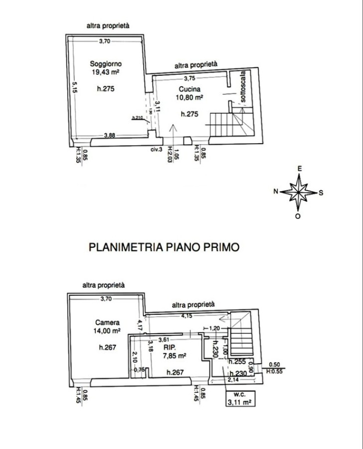 L'immobile è disposto su due livelli terra e primo ed è composto dall'ingresso principale in cucina, ripostiglio-dispensa, sala. Da scala interna in pietra al piano primo troviamo il bagno, la cameretta e la camera matrimoniale. In proprietà esclusiva garage con resede, quest'ultimo viene venduto da ristrutturare così da poter decidere la destinazione più adatta alle proprie esigenze (garage, reparto lavanderia, ulteriore ripostiglio). Predisposizione dell'aria condizionata nella sala ed in tutta la zona giorno.