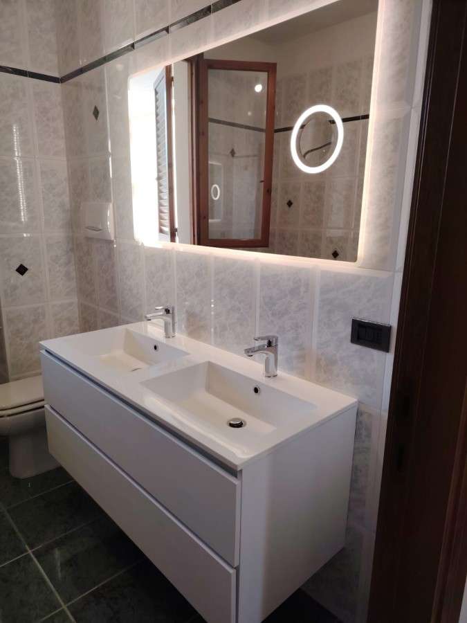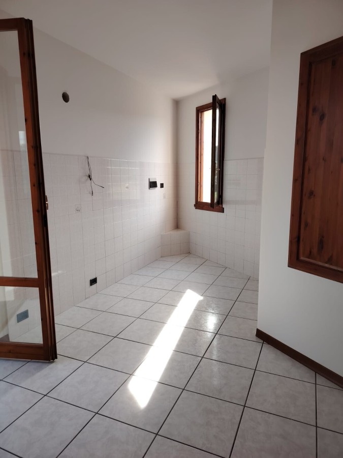 Nell'immediata campagna di Villanuova, in fabbricato composto da 7 unità immobiliari, appartamento posto al piano primo con garage nel piano seminterrato, balconi e resede privato. Al piano terra troviamo l'ingresso principale dell'abitazione, percorrendo il grazioso resede frontale, perfetto per chi ama i fiori vista la sua esposizione solare, abbiamo il portone in legno blindato. Salendo la scala in marmo ci troviamo nel salone con 2 porte finestre sul balcone: la vista è sulle colline circostanti. Cucina abitabile con camino e balcone, disimpegno notte che introduce nelle tre camere ed i due bagni. Le prime sensazioni che si provano visitando l'immobile sono la tranquillità della zona, la luminosità ed ariosità di tutte le stanze. Costruzione di metà anni '90, abbiamo una ceramica chiara a pavimento, gli infissi sia interni che esterni (persiane) sono in legno, i bagni quello più piccolo posto in camera è stato rinnovato tutto, l'altro più grande ha la vasca. Il garage è collegato internamente all'appartamento tramite scala a chiocciola in ferro.