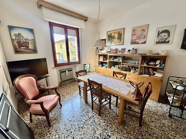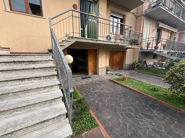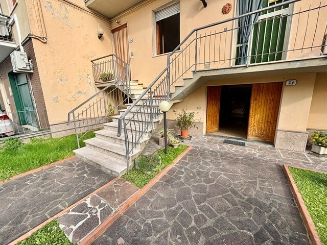 Sovigliana, in zona servita interna rispetto al viale Togliatti, appartamento con l'ingresso singolo posto al piano terra e primo. Entrando nel resede frontale a comune con un'altra unità immobiliare, troviamo la scala esterna, salendo al piano primo dal portone blindato entriamo nell'ampio ingresso disimpegno, cucinotto tinello, soggiorno, due camere matrimoniali di oltre 15 mq, bagno. Nel cucinotto oltre ad avere lo spazio dispensa troviamo le scale interne che collegano direttamente al piano terra composto dal garage e locale di sgombero/lavanderia. Sul retro della proprietà orto esclusivo.