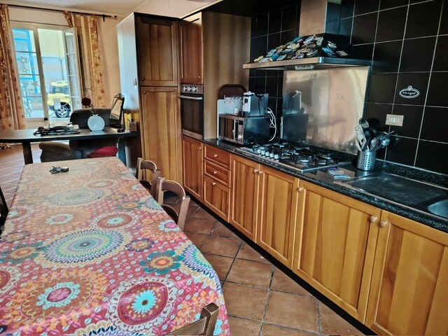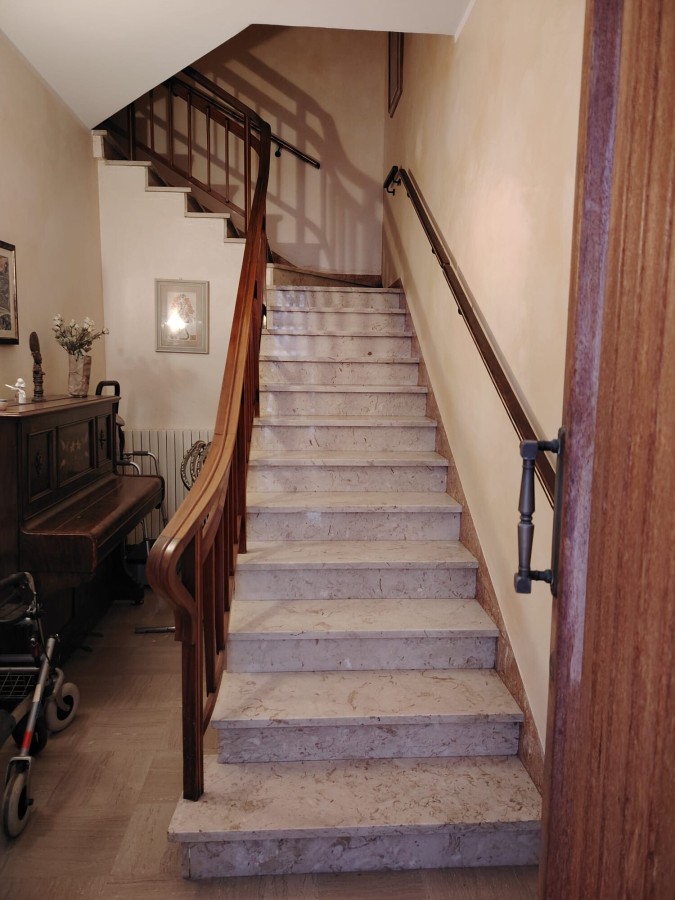 Iniziamo la descrizione dall'unità immobiliare posta al piano terreno: l'ingresso è indipendente, ampio soggiorno aperto sul tinello cucina da porta finestra si accede sul giardino totalmente abitabile ed in privacy; troviamo due camere matrimoniali, il bagno ed il ripostiglio. Al piano primo l'altro appartamento: anch'esso con l'ingresso indipendente la scala ad ingresso è in marmo. Cucinotto con dispensa ed ampio tinello (c'è anche il divanetto a due posti), due camere matrimoniali di cui una con terrazzo, bagno e ripostiglio.