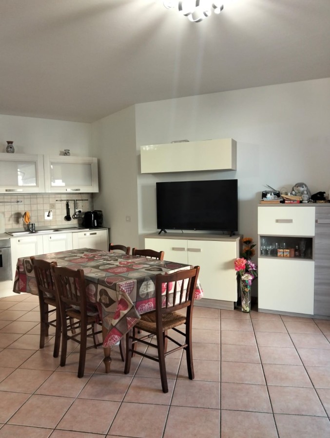 Ampio Soggiorno con angolo cottura con dispensa, uscita da porta finestra sul resede esclusivo; dal disimpegno notte si entra nelle due camere, l'una matrimoniale, l'altra cameretta. Bagno.