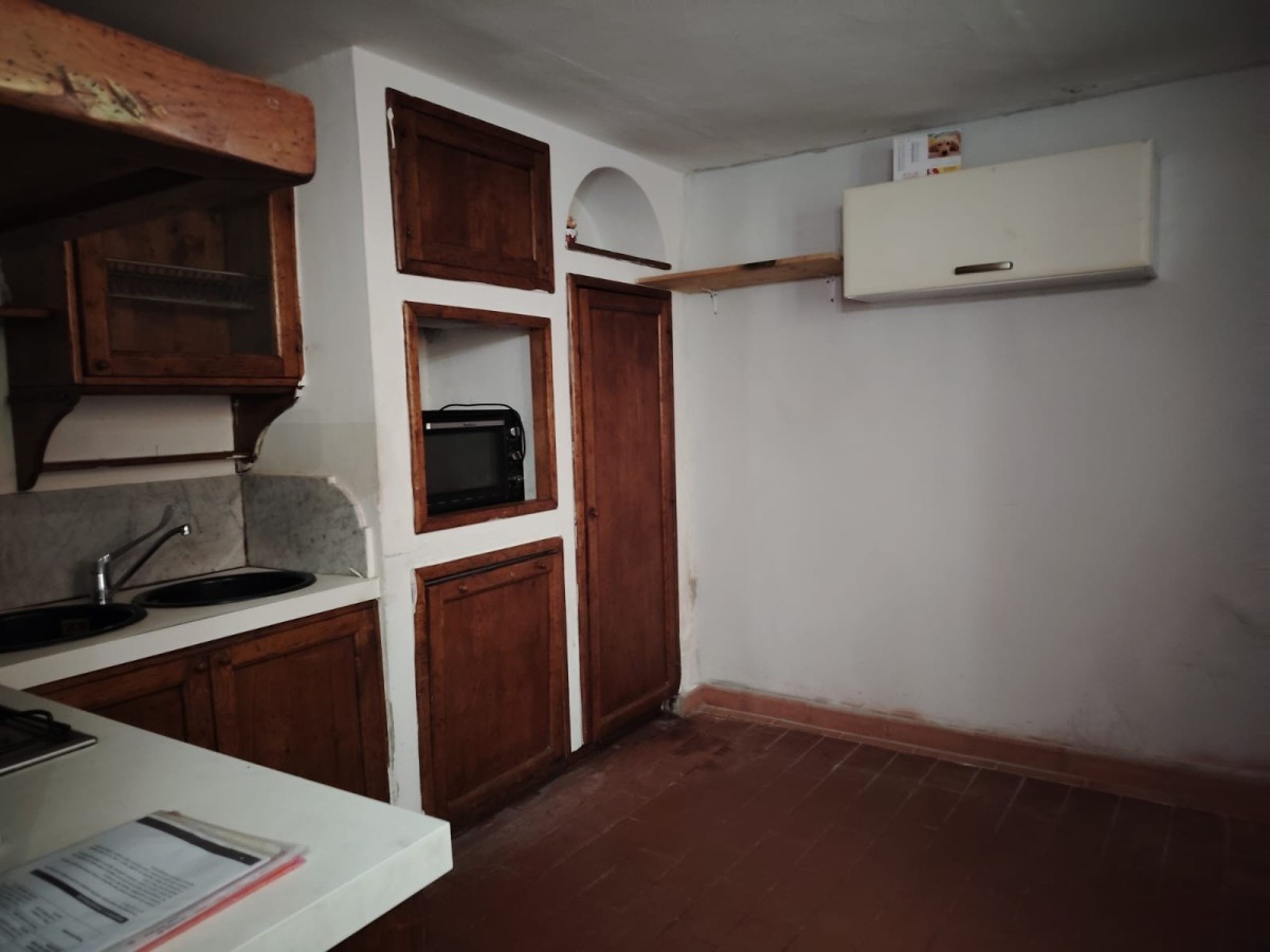 Internamente l'immobile è in buono stato di manutenzione: il legno è presente a pavimentazione nella zona notte, il rivestimento delle scale; nella zona giorno il pavimento è in cotto. Infissi interni ed esterni (da riguardare) sono anch'essi in legno.