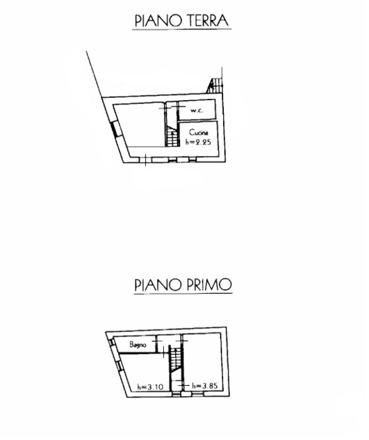Portoncino blindato, ingresso soggiorno, antibagno (con scarico lavatrice) e bagno, cucina abitabile; salendo tramite la scala in muratura rivestita con legno si accede al piano primo dove troviamo il disimpegno, le due camere matrimoniali ed il bagno principale. Mq totali 75. Riscaldamento autonomo a metano.